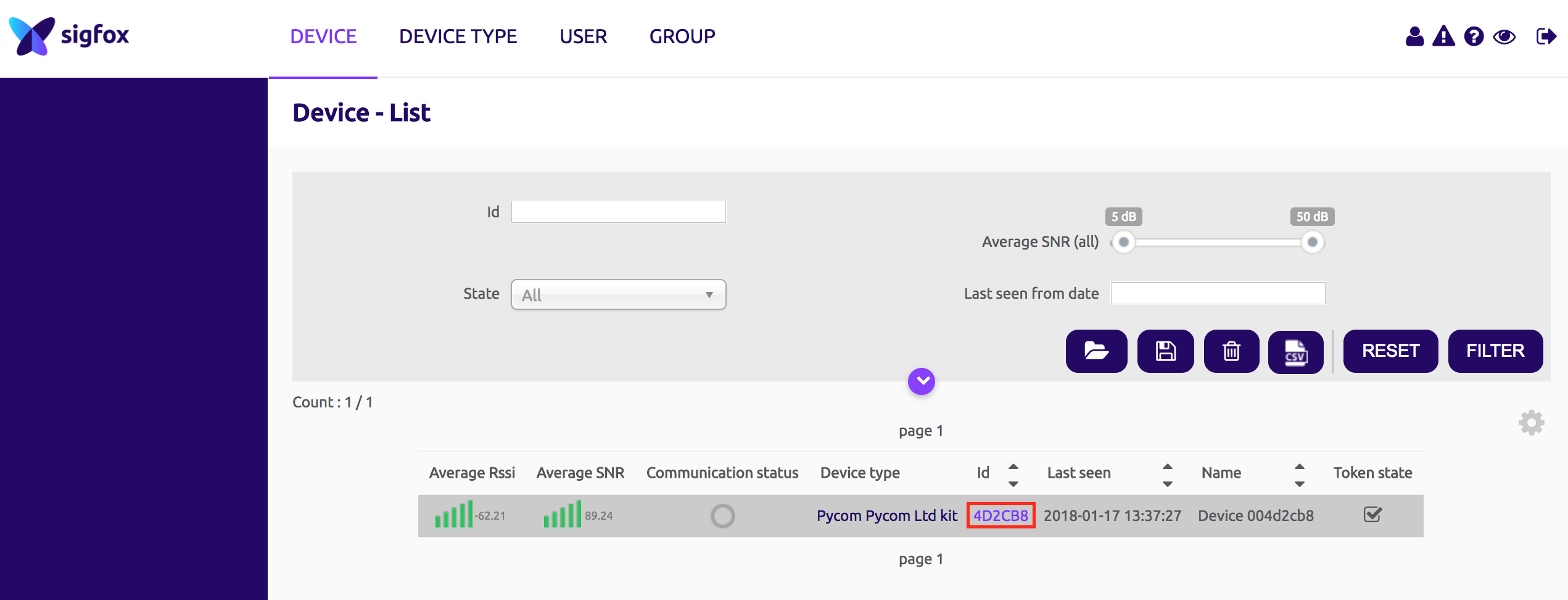 Firstly you will need to log into the Sigfox Backend, navigate to device, and click on the Sigfox ID of the affected SiPy.