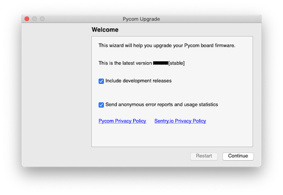 • Development: The latest beta-releases will be published here, they will be of the pybytes variant. This is new development, so it can contain known and unknown issues. Testing and feedback is very much appreciated, but don’t run it in production.